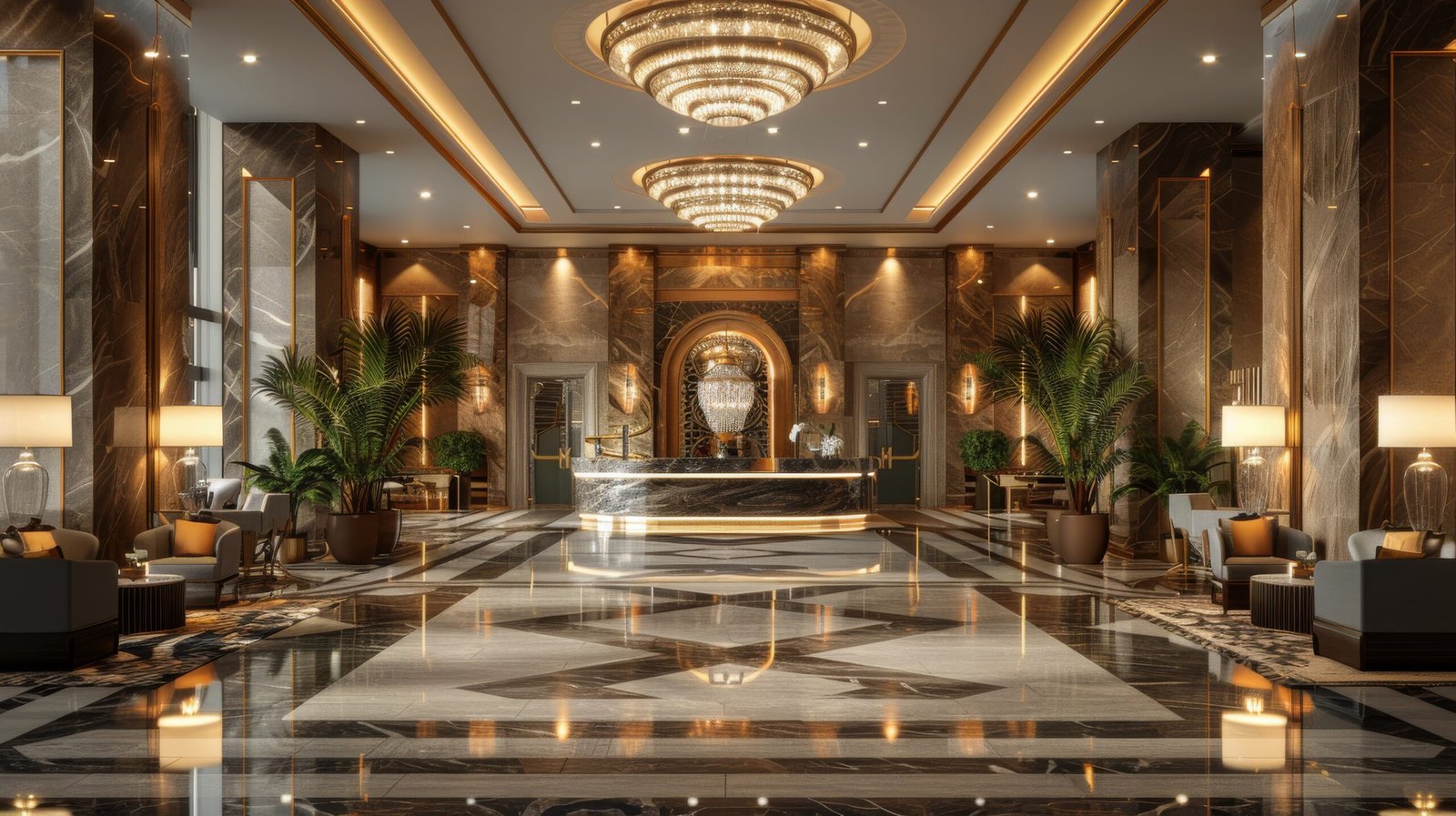 Study successful lobby and reception designs in various settings, such as hotels and resorts, to understand how layout, decor, and amenities contribute to a positive visitor experience.