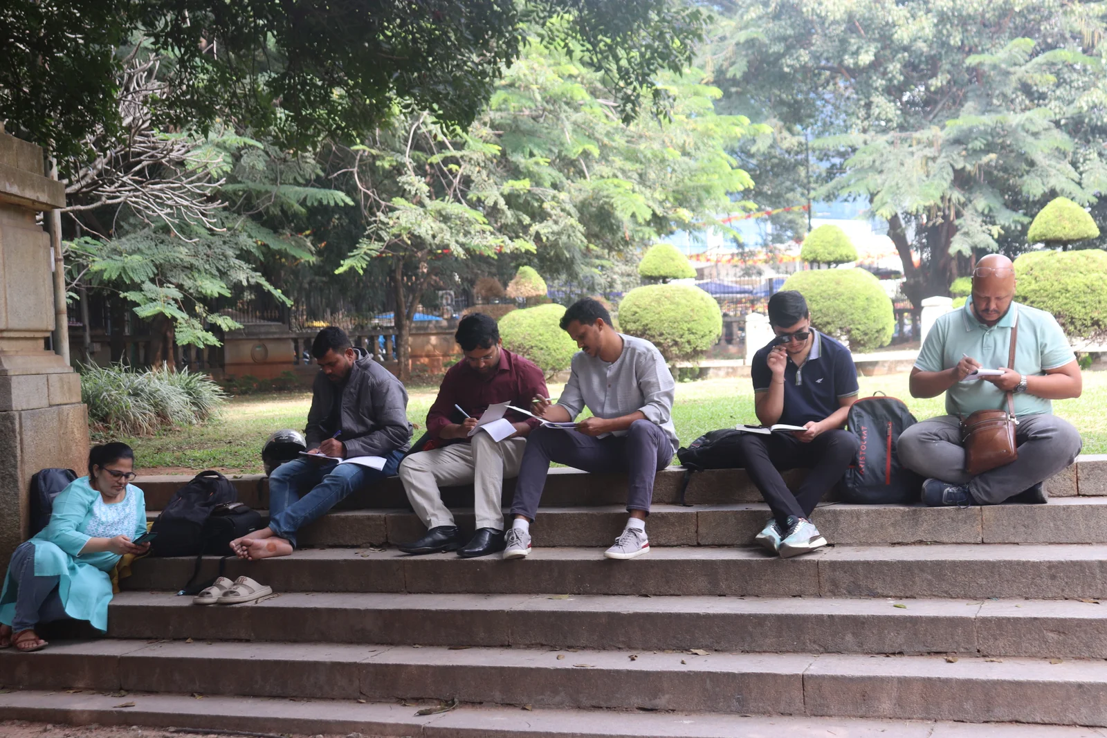 Outdoor learning in a park brings students closer to nature, enhancing focus, creativity, and real-world observation skills.